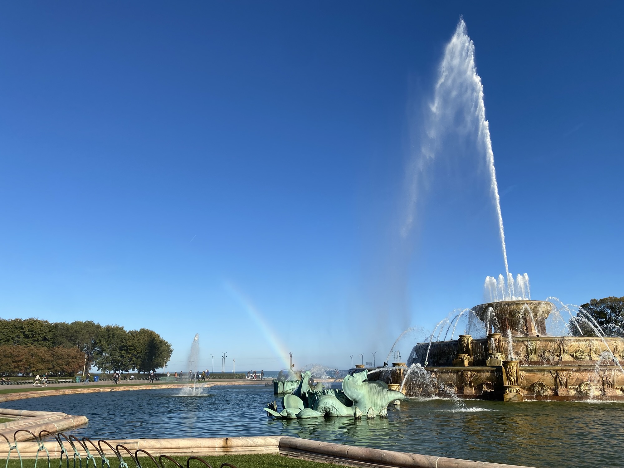The main reason for our trip was a Communications Conference, which was held about 30 minutes outside of Chicago. That left us with Saturday afternoon as free time, so we decided to check out some sights. We took photos at the Bean (Cloud Gate) and also visited the Clarence F. Buckingham Memorial Fountain. The fountain is impressive—every hour, a gust of water shoots out, and when the sun hits the mist, it creates a beautiful rainbow.